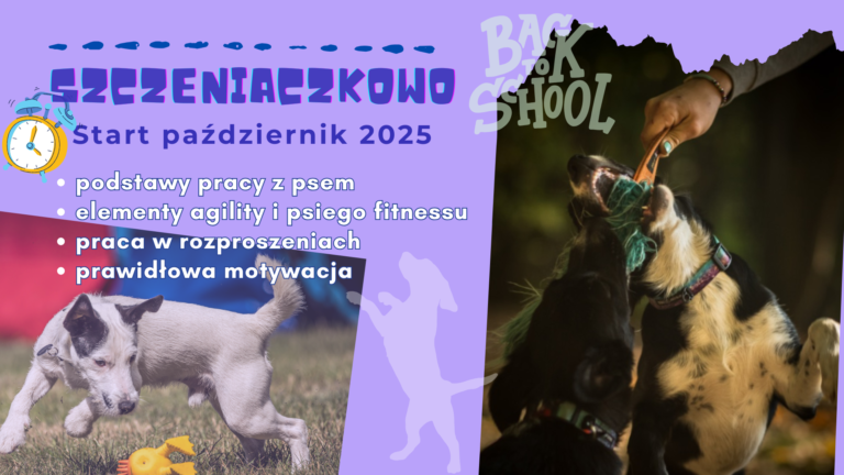 Kurs przeznaczony dla psich dzieciaków, których właściciele myślą o sportowej przyszłości swoich czworonogów. w planie: nauka prawidłowej komunikacji różne sposoby nagradzania i stopniowanie nagrody! nauka pracy w rozproszeniach, dostosowanych do wieku uczestników 😉 kształtowanie vs. naprowadzanie elementy przydatne w agility podstawy fitnessu dla szczeniaków, jako wyrabianie odpowiednich nawyków! Zajęcia beda odbywały się w piątki ranoKurs…